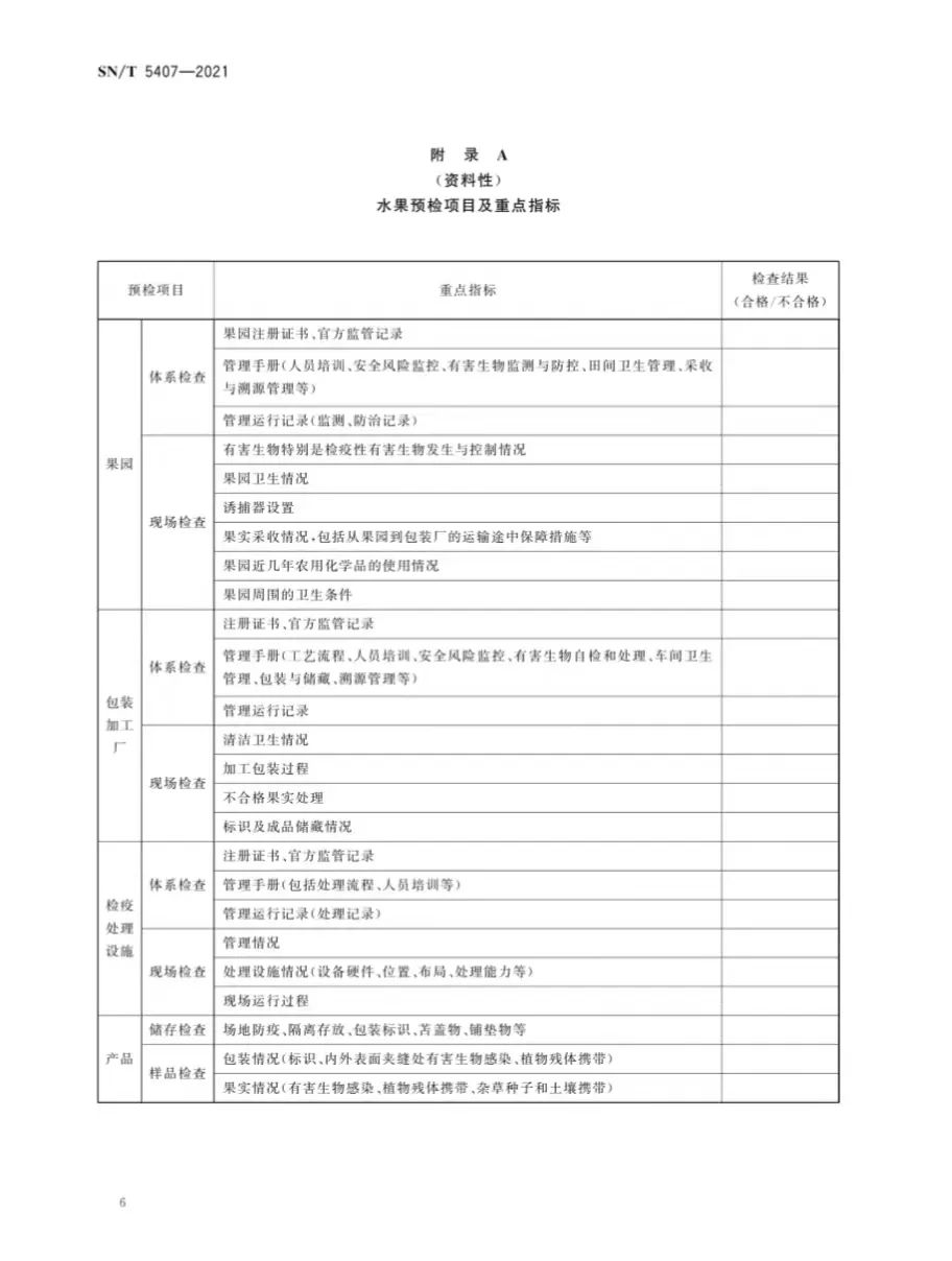 適用于向中國出口水果的產地和產品預檢。