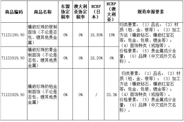 珍珠可以鑲嵌在貴金屬上,制成精美的首飾。鑲嵌珍珠的貴金屬首飾,應(yīng)歸入7113項(xiàng)下。以下是珍珠首飾可能涉及的歸類、規(guī)范申報(bào)要素及進(jìn)口關(guān)稅稅率,填報(bào)時(shí)請(qǐng)?zhí)貏e注意: