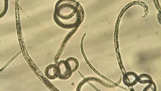 ★病原物形態(tài):線蟲(chóng)體纖細(xì),表面光滑,有環(huán)紋。雌蟲(chóng)卵巢前伸,上陰唇長(zhǎng),形成陰門蓋,尾近圓柱形,尾端鈍圓;雄蟲(chóng)尾尖,似爪狀,交合刺大,弓形,成對(duì),基部有一大而尖的喙,交合刺末端有一凸出物,尾端有一卵圓形的交合傘。