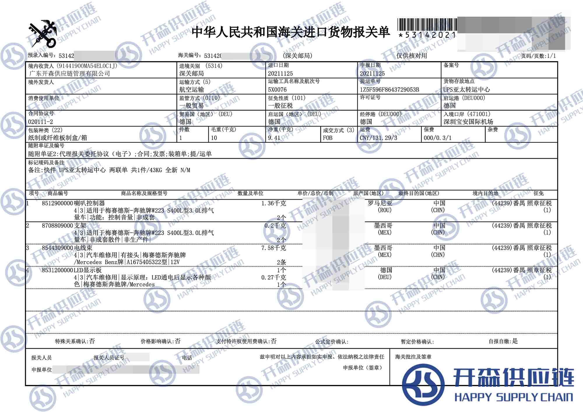 開森供應(yīng)鏈擁有多種多樣的汽車配件進口渠道與豐富的進口報關(guān)案例。我司提供收貨、報檢(商檢)、報關(guān)清關(guān)、貨物運輸一條龍服務(wù)。我們公司的優(yōu)勢:1、價格優(yōu)惠;2、安全快速;3、專業(yè)與便捷。