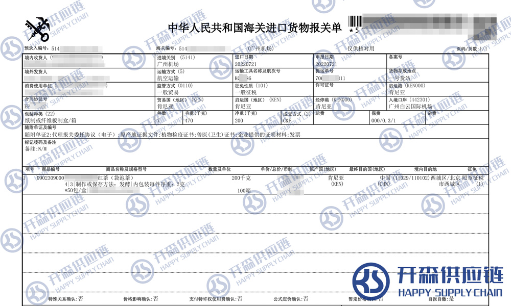 【導讀】您正在閱讀的是關于肯尼亞紅茶包進口報關清關代理案例【經典案例】的內容,本文由開森食品進口報關代理小編整理編寫;