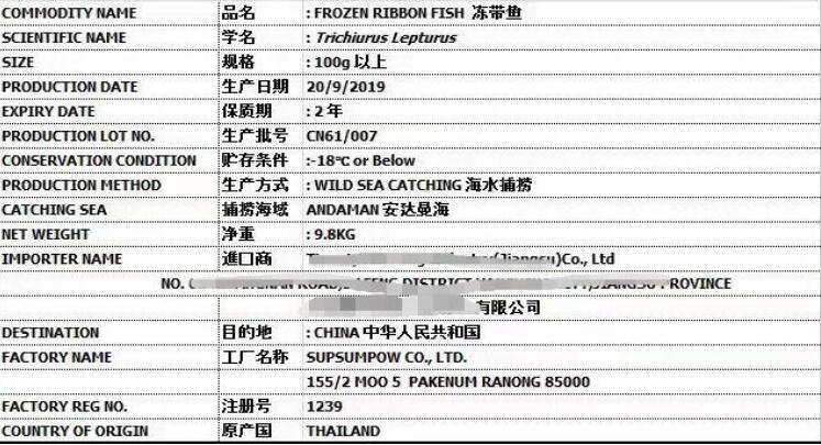 進口水產品標簽有清晰易辨的中英文字樣,標明以下內容: