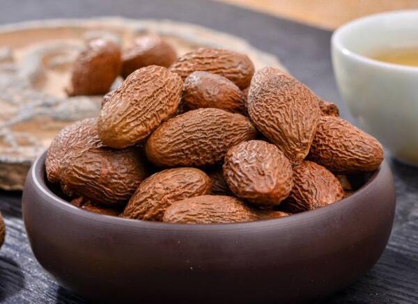 胖大海別名:大海、大海子、大洞果、大發,梧桐科植物胖大海的干燥成熟種子。呈紡錘形或橢圓形,長2~3cm,直徑1~1.5cm。先端鈍圓,基部略尖而歪,具淺色的圓形種臍,表面棕色或暗棕色,微有光澤,具不規則的干縮皺紋。外層果皮極薄,質脆,易脫落。中層果皮較厚,黑褐色,質松易碎,遇水膨脹成海綿狀。斷面可見散在的樹脂狀小點。內層果皮可與中層果皮剝離,稍革質,內有2片肥厚胚乳,廣卵形;子葉2枚,菲薄,緊貼于胚乳內側,與胚乳等大。氣微,味淡,嚼之有黏性。