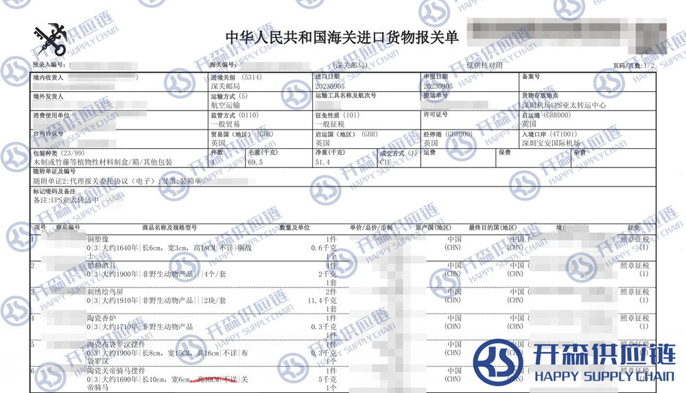 開森進口供應(yīng)鏈擁有古董藝術(shù)品進口報關(guān)操作經(jīng)驗及案例,十余年操作經(jīng)驗及案例可供參考,可按需定制古董藝術(shù)品進口方案,幫助客戶解決進口難題,快速進口清關(guān)到港到貨。